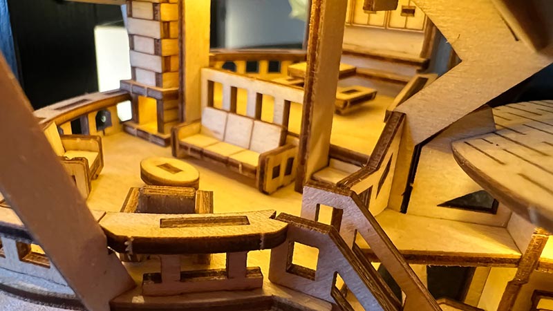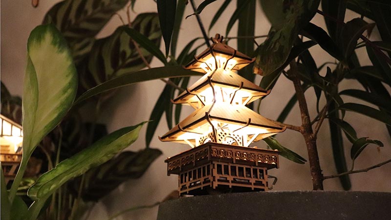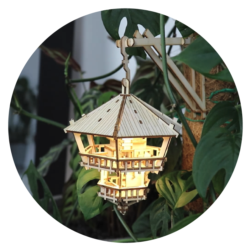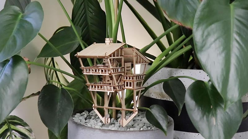 Every 3D puzzle comes with battery operated LED lights to give your Tiny Treehouse and plants a warm and magical glow.