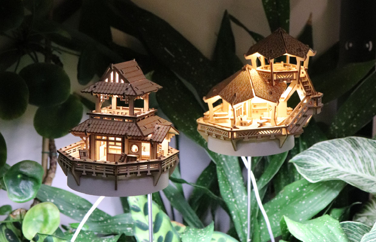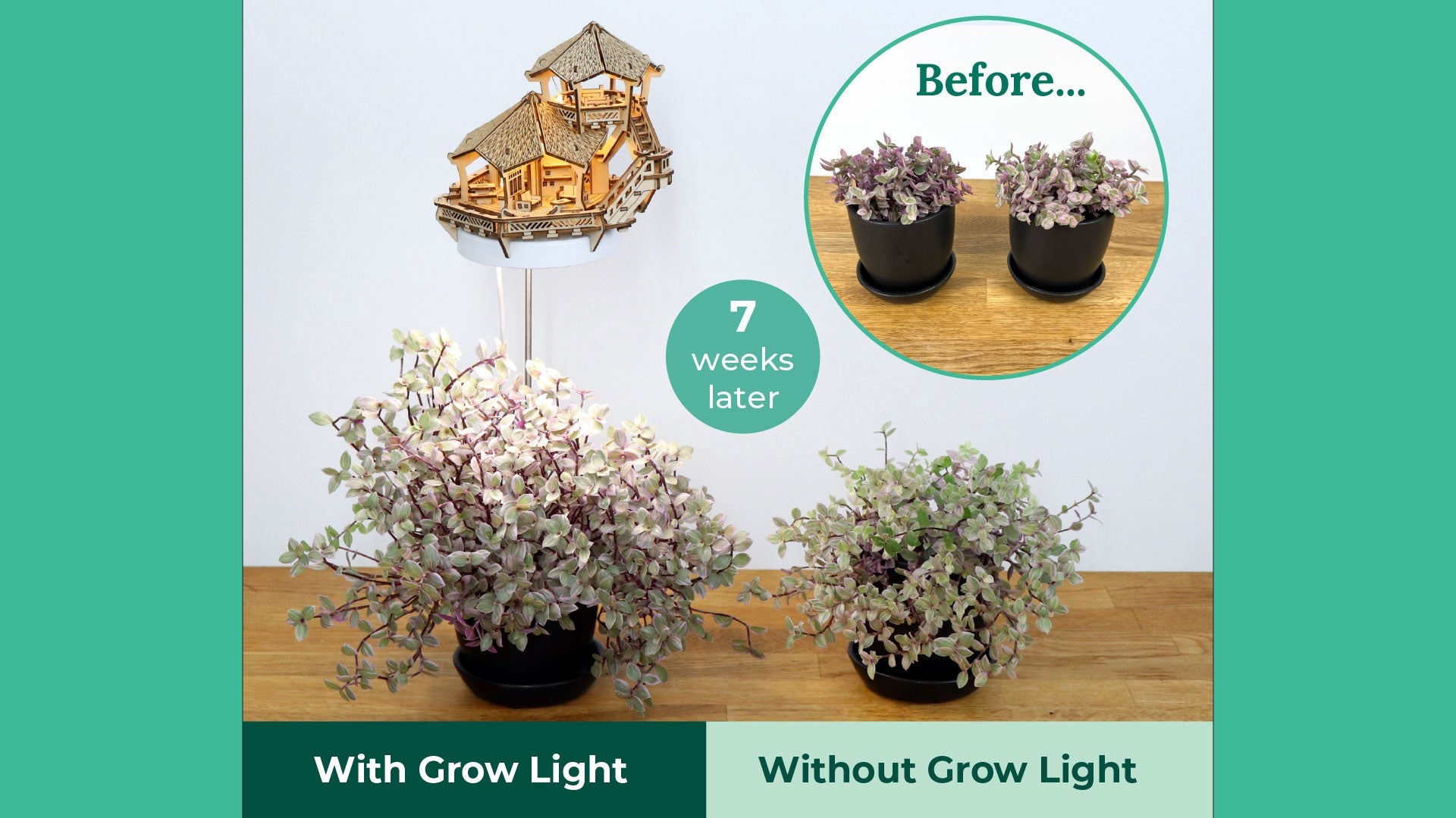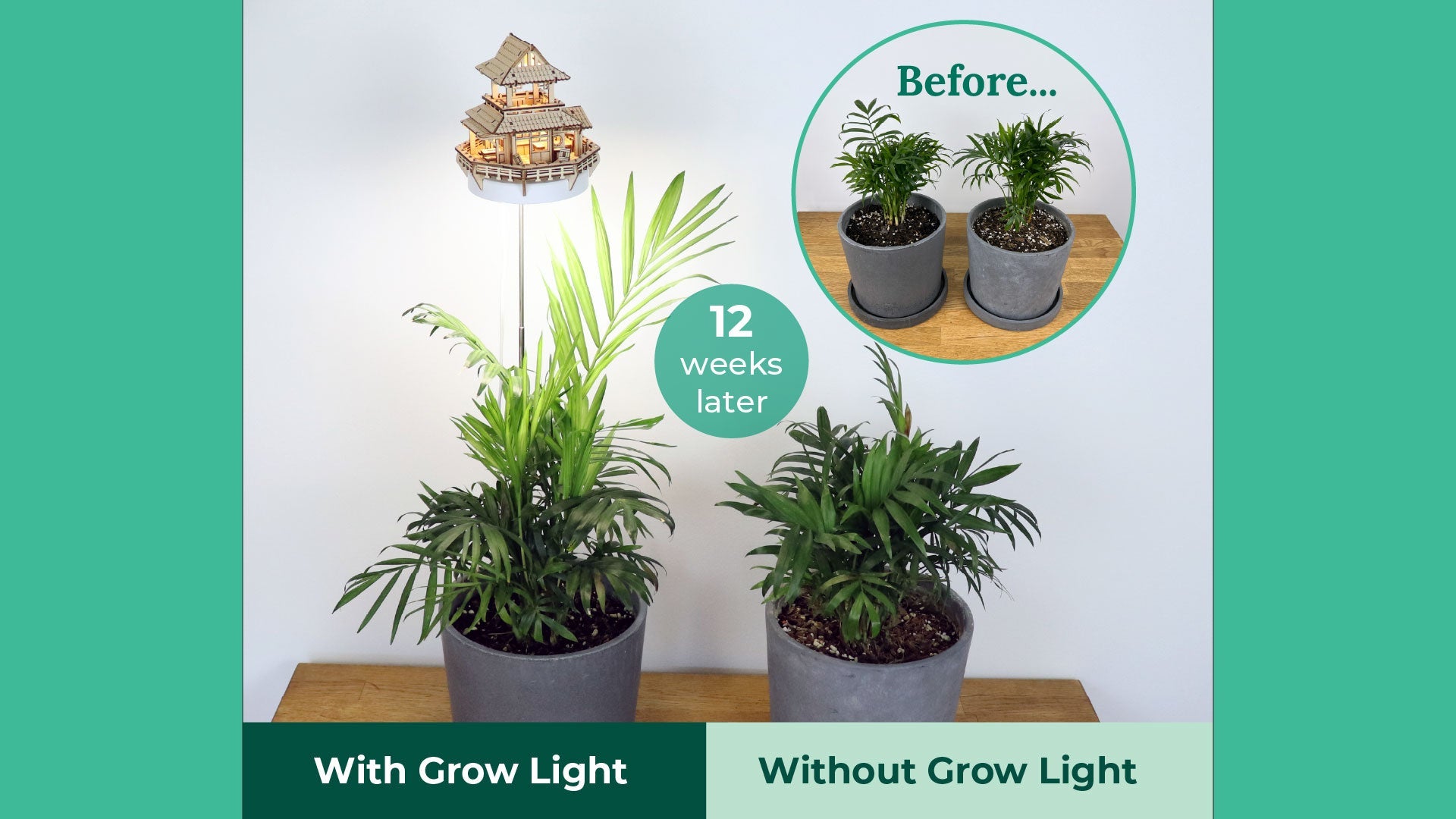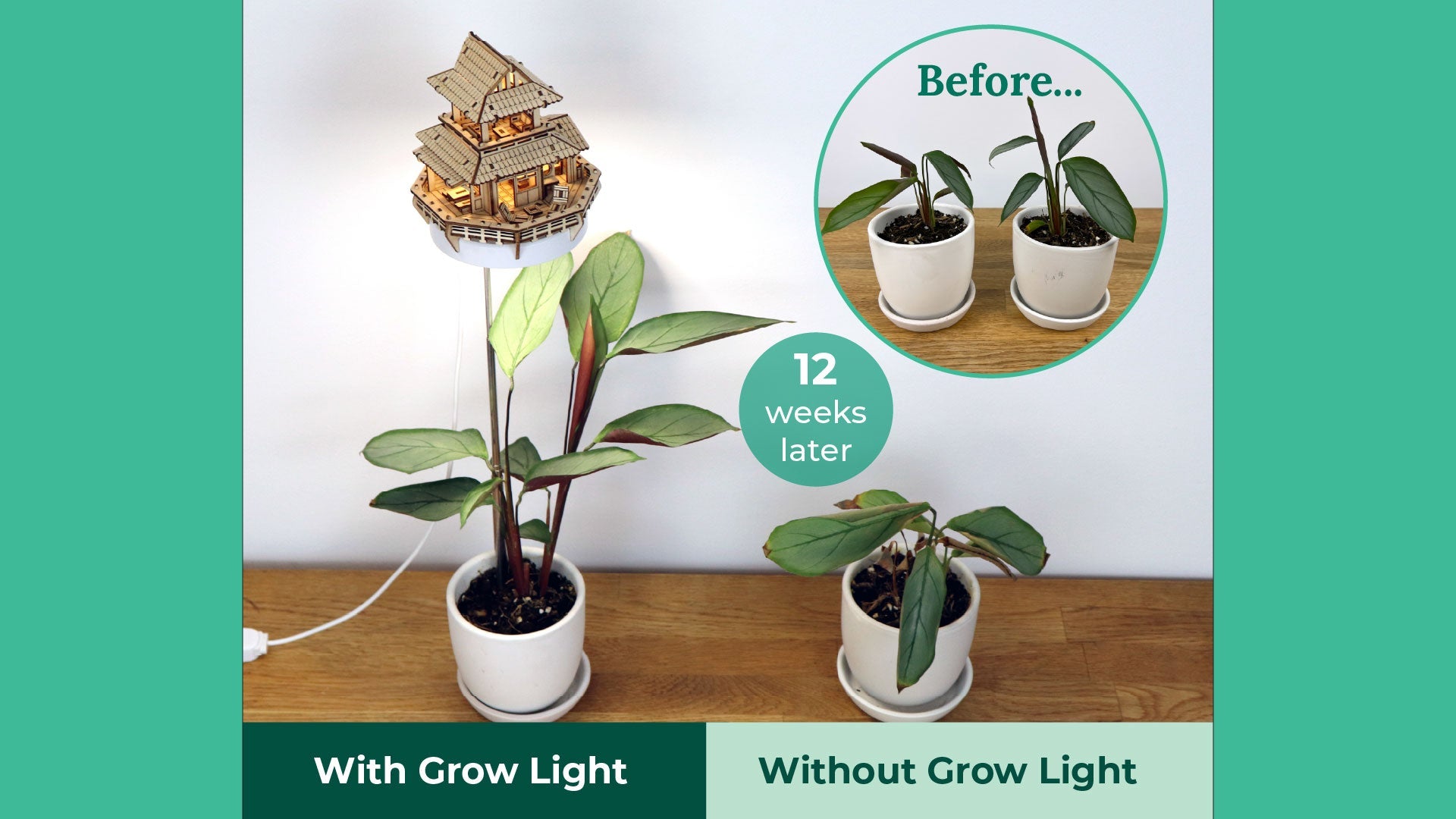 Each kit includes laser-cut wooden model pieces, a USB-powered grow light with timer and dimmer controls, a 2 meter USB cord, craft tweezers and easy-to-follow instructions. Everything you need to craft and grow - just add a plant!