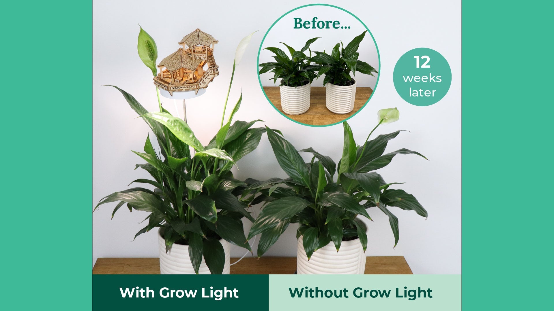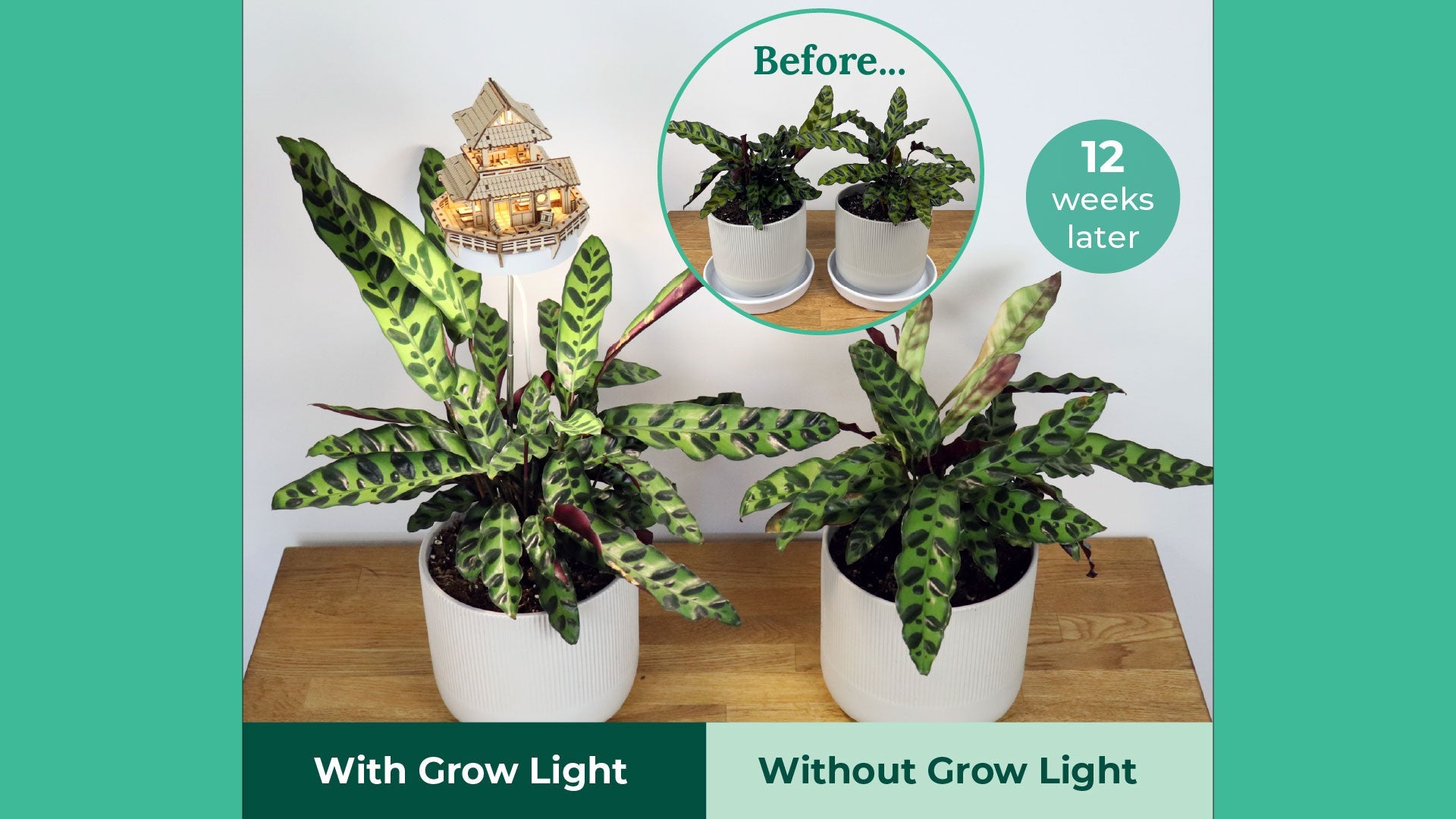 This isn’t just decoration - it’s real plant care. After just 2-3 months, the plants grown under our full-spectrum treehouse grow lights are thriving, lush, and noticeably taller than the ones without. Designed to mimic natural sunlight, the built-in grow light gives your plants the support they need to grow strong and healthy - especially in low-light spaces. It's functional, beautiful, and plant-parent approved.