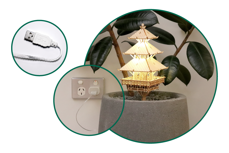 Deze lampjes hebben een USB-aansluiting in plaats van een batterijcompartiment, zodat je ze eenvoudig kunt aansluiten op een USB-poort om je boomhut te verlichten. Ideaal als je je boomhut regelmatig wilt verlichten!